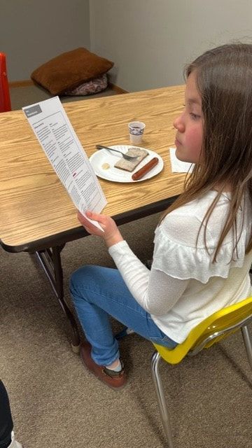 We started with a warm welcome and opening prayer. Next, we enjoyed a delicious breakfast, while our Catechist read "The Weight of the Mass" by Josephine Nobisso.