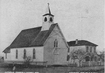 1877.....First Catholic Church built. It was named St. Charles and was the first church built in Sidney. It was a wood frame building, 26 x 48 ft. It was built largely with help from Ft. Sidney soldiers. Previously Masses had been held in private home by itinerant missionary priests. There is no record found as to why the name was changed to St. Patrick's.